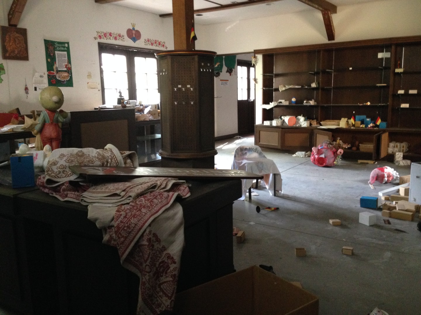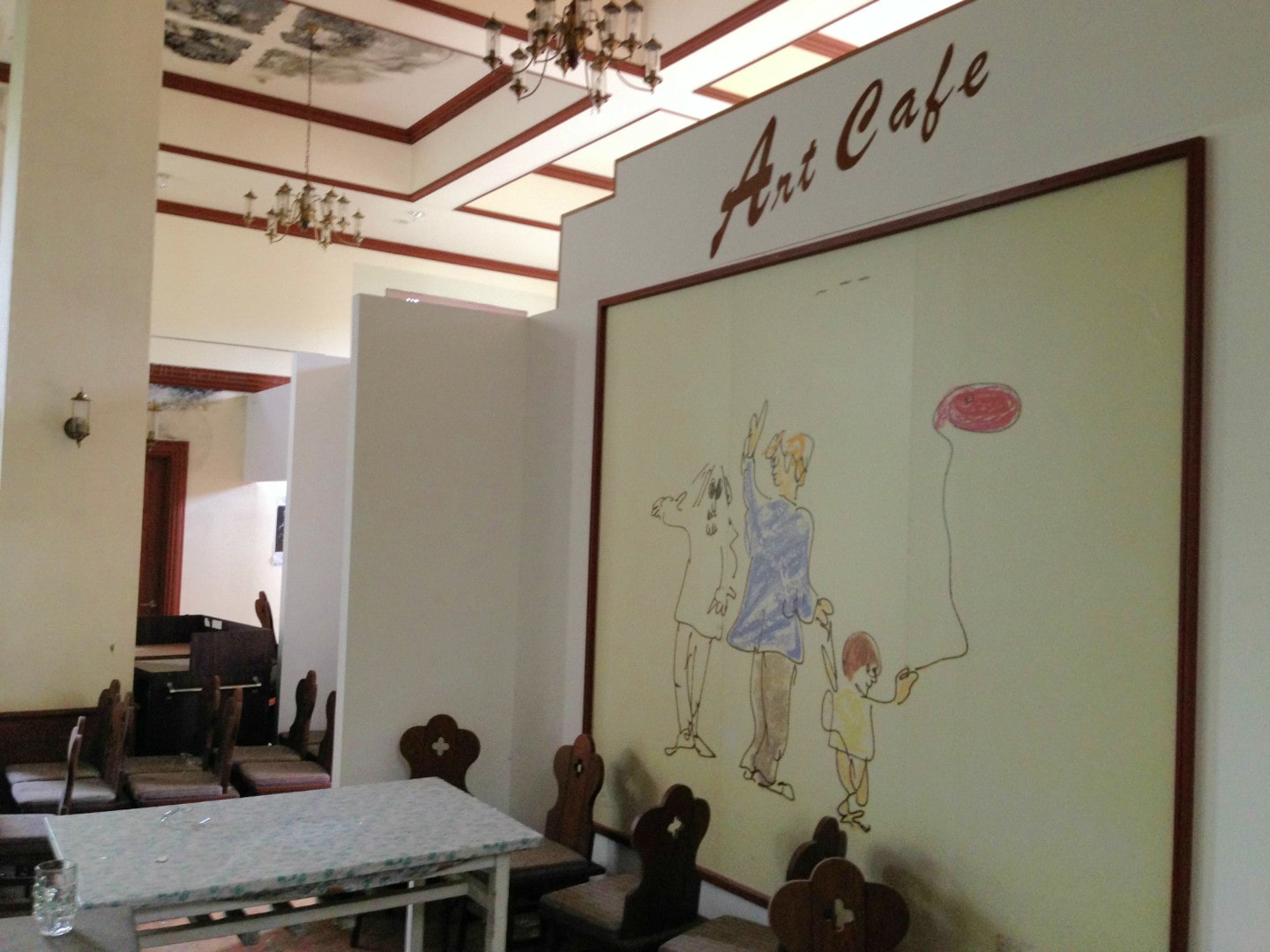 All the artwork from the walls was gone, besides the largest pieces like a huge portrait print of John Lennon in the genkan and some prints on the walls in the cafe.