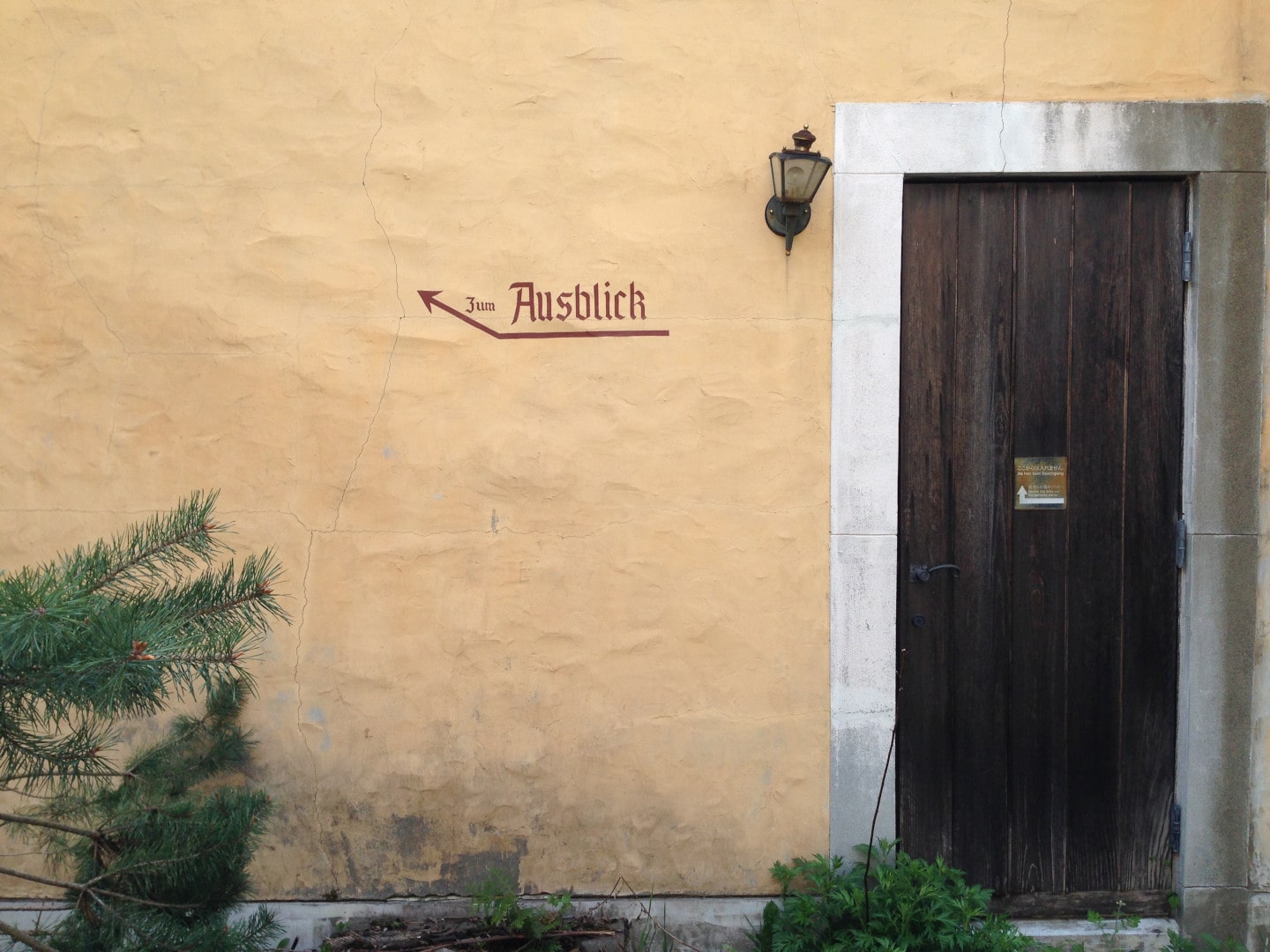 All the doors to enter the main castle-style building are blocked with large pieces of wood. One of the doors seemed like it could be opened but after persistent tugging, we figured it was boarded up from the inside.
