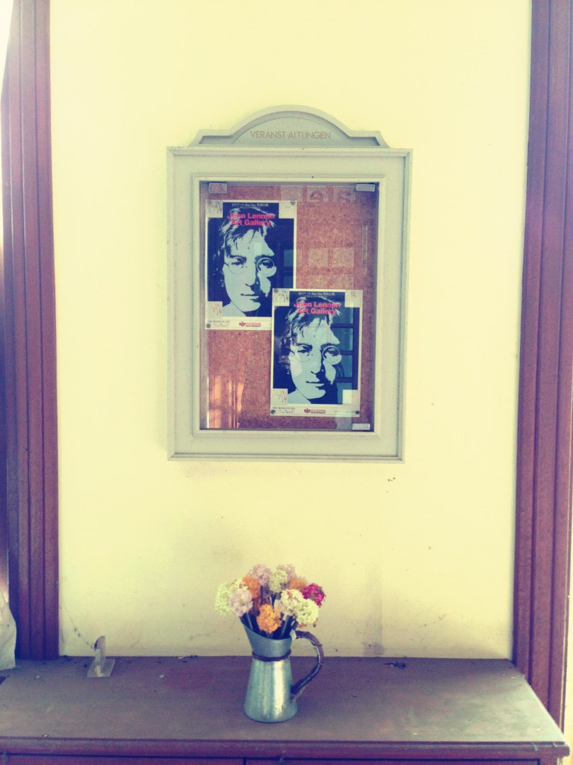 I saw a poster in the gift shop for a John Lennon-themed art gallery and cafe, dated 2002. I was stunned. What was a John Lennon art gallery doing in a German-style theme park on Hokkaido island in Japan? Totally random. I collect posters, so I took it. I kind of felt bad about that, but there was another one next to it. And most of the other stuff had been looted from the place anyway.